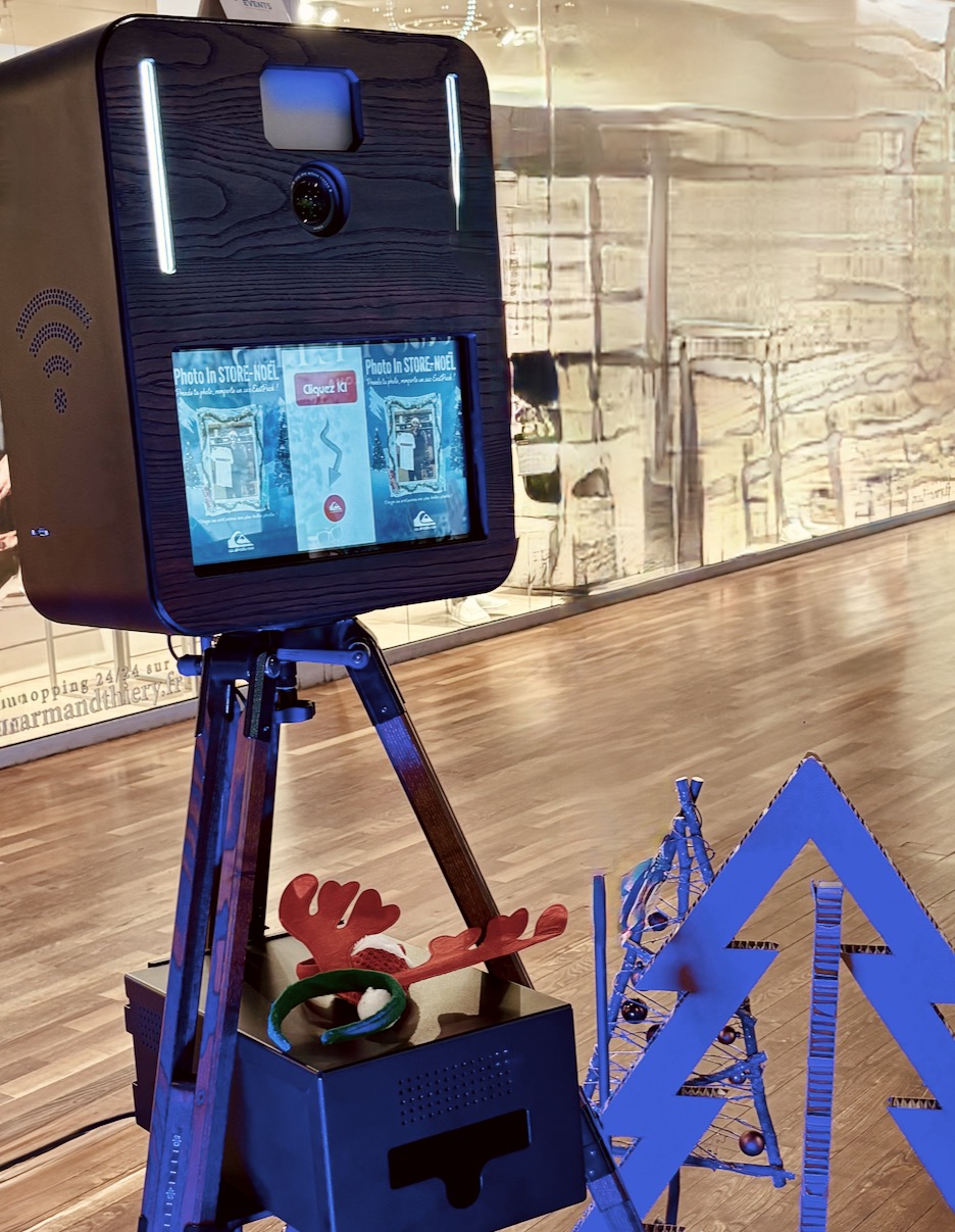 Selfie Box IA : borne photo moderne, captures instantanées, partage numérique